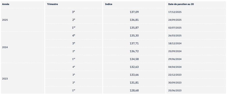À titre d’exemple, au 3e trimestre 2025, il est fixé à 137,09.